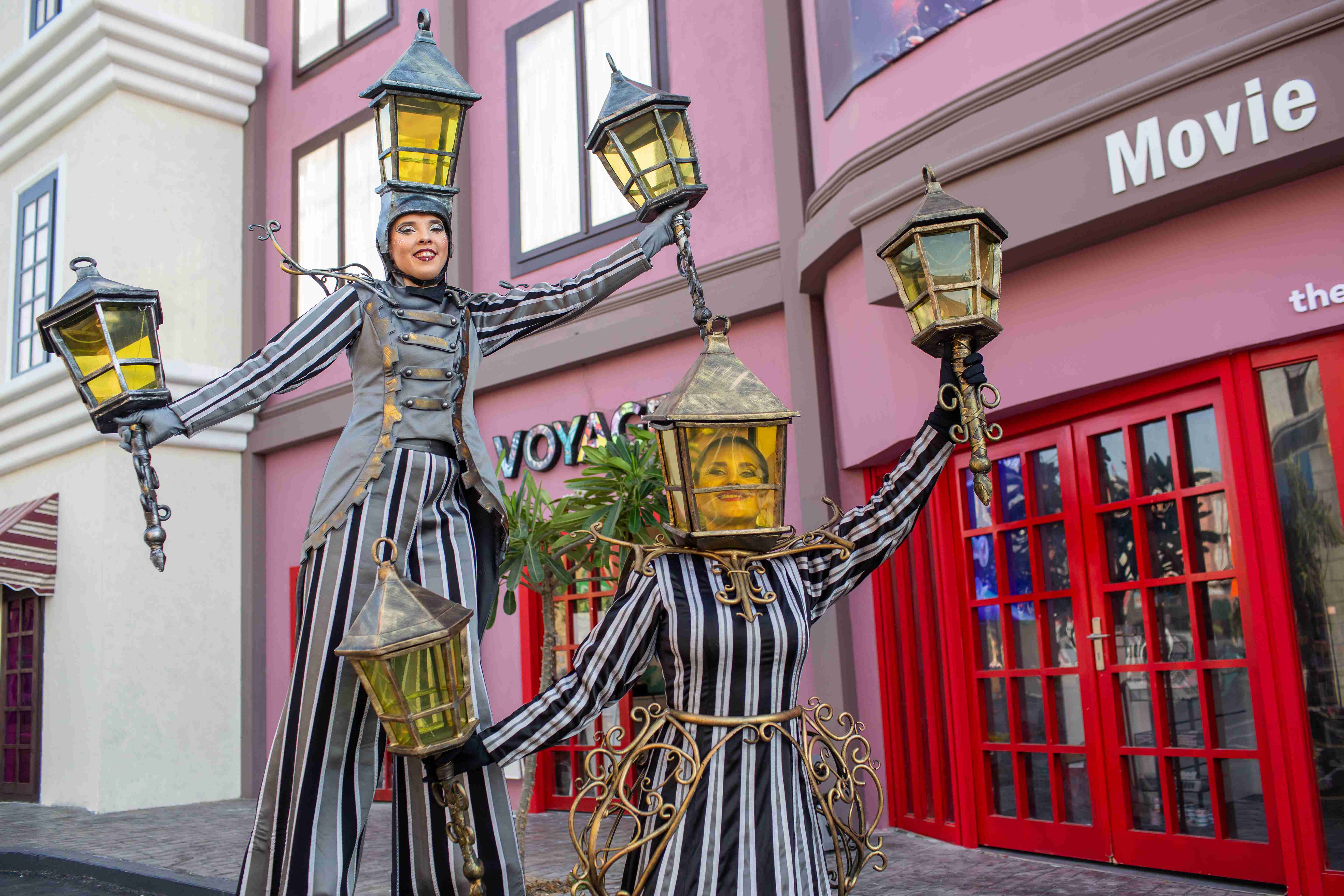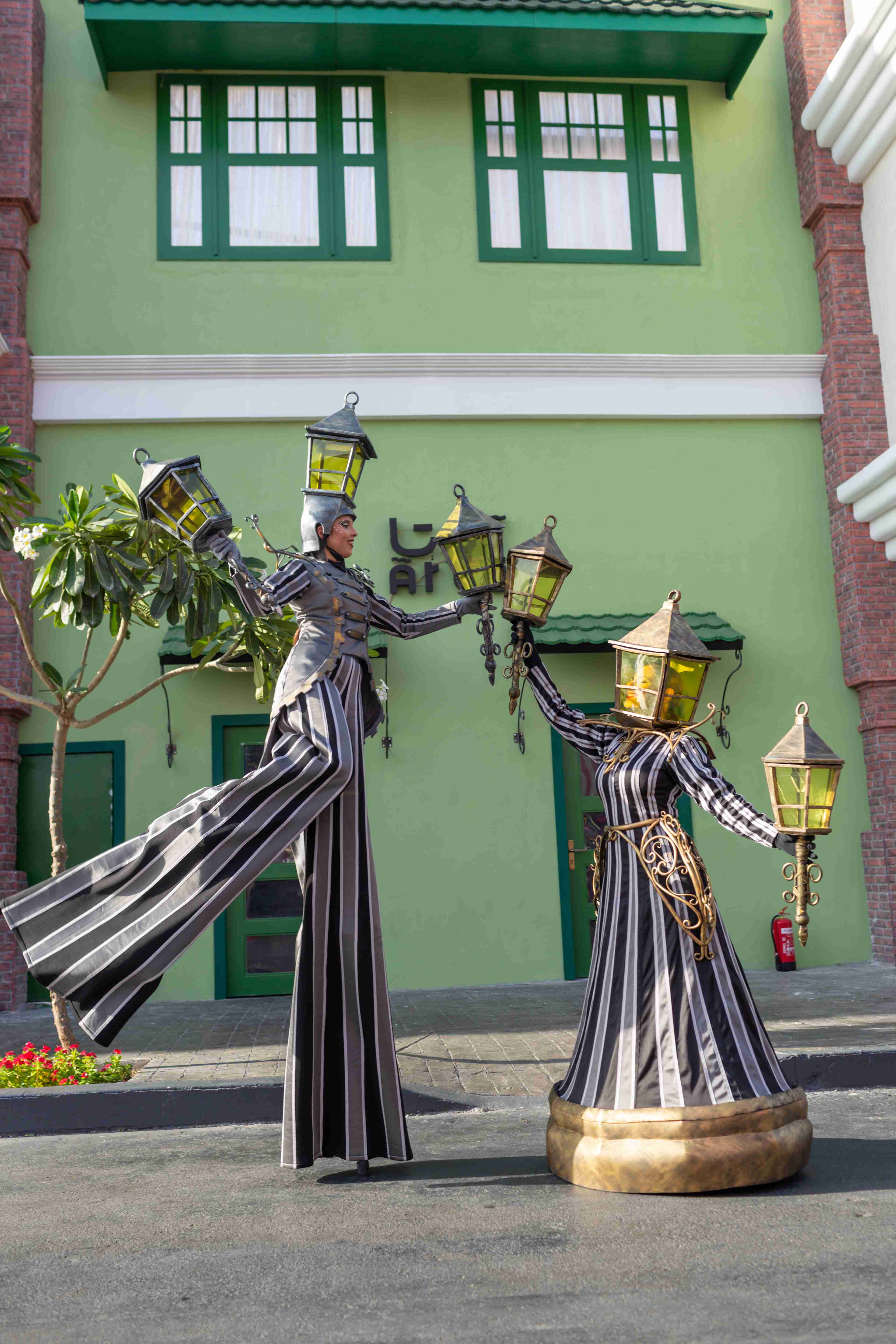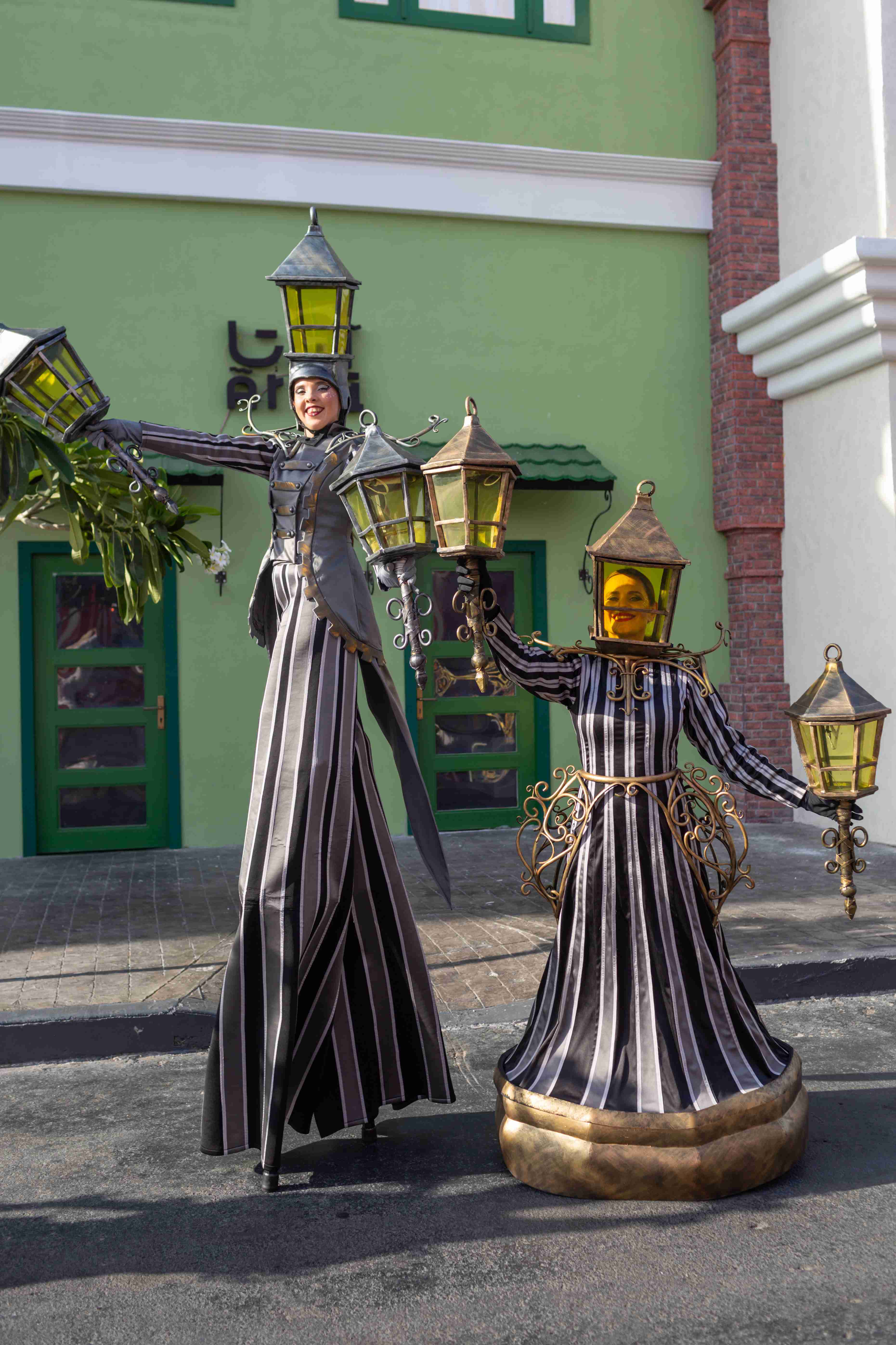 "Keepers of Light" is a striking two-person roaming musical spectacle that transforms any venue into a luminous dreamscape. Adorned in elegant, vertically striped costumes with ornate wrought-iron detailing and glowing lantern headpieces, the performers project a timeless, slightly surreal aesthetic. The act adapts seamlessly to indoor and outdoor environments and can be tailored for premieres, galas, and brand activations. The interplay of warm illumination, rich costume textures, and precise choreography creates memorable photo moments and a refined, immersive atmosphere.