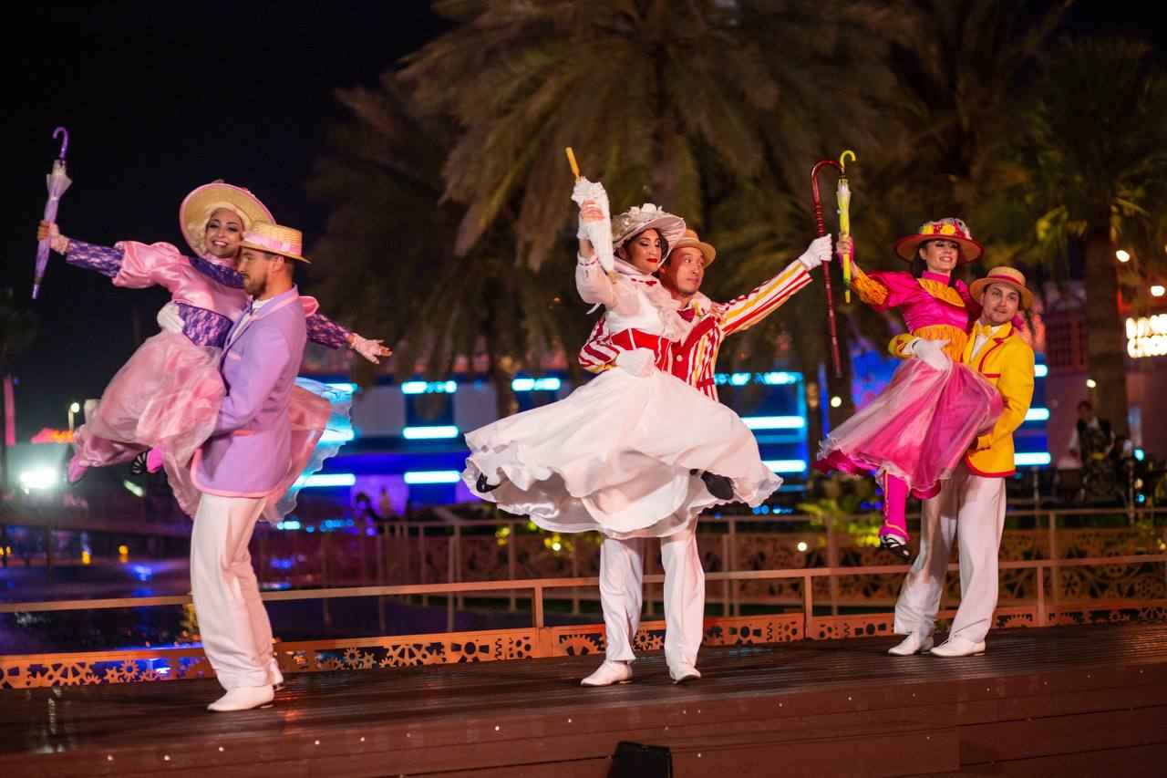 Mary Poppins – a dazzling dance show that transports your guests to a world of whimsical wonder and timeless charm. This enchanting ensemble of performers captivates with impeccably tailored, pastel-hued outfits, featuring elegant straw hats, charming umbrellas, and classic canes, all evoking the beloved magic of a classic tale.
