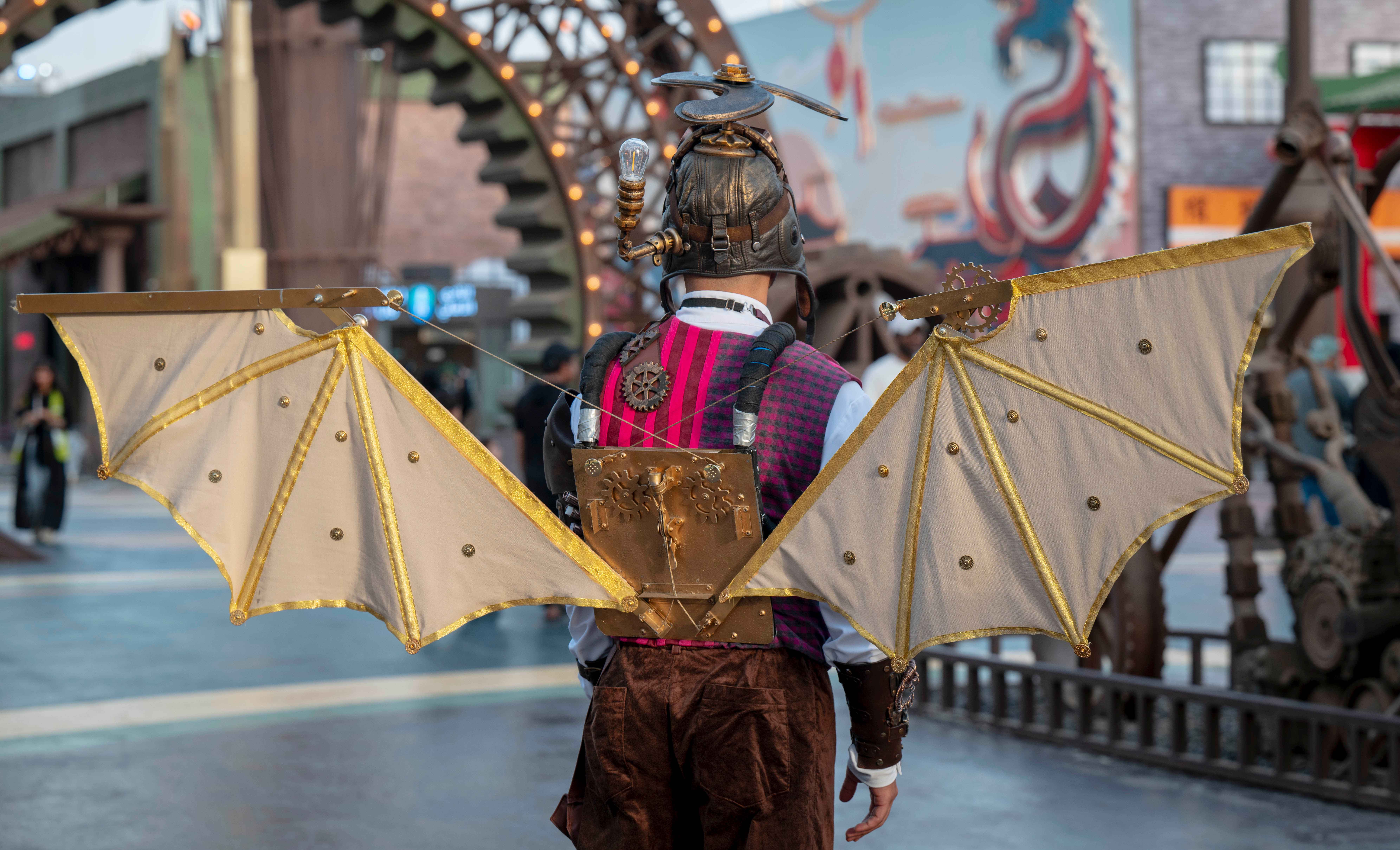 Embark on a whimsical journey through time with "The Clockwork Aviator" – a captivating roaming act from Breakthrough Xclusive that brings the spirit of steampunk adventure and ingenious invention directly to your event. This intrepid explorer instantly draws attention, clad in an impeccably tailored ensemble featuring a striped vest, velvet trousers, and tall leather boots. His look is crowned by an inventive aviator helmet adorned with a working propeller and a glowing bulb, complemented by a pair of elegant, mechanically inspired wings shimmering with brass accents and miniature gears, hinting at ambitious aerial feats. As he gracefully navigates your event, The Clockwork Aviator engages with guests with effortless charm, posing for unique photos, sharing tales of his fantastical discoveries, and igniting a sense of wonder. Could be mixed with "The Steambelles" drummer act.